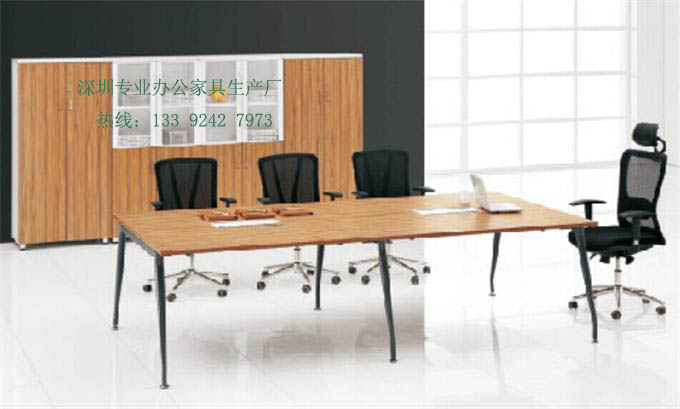 時尚會議桌基 材:E1級達歐洲環保標準基材(目前國內辦公家具行業板式基材標準較高的),此基材用原木壓縮顆粒成型,甲醛含量小于1.4MG/L,抗彎性能強,不易變形。
